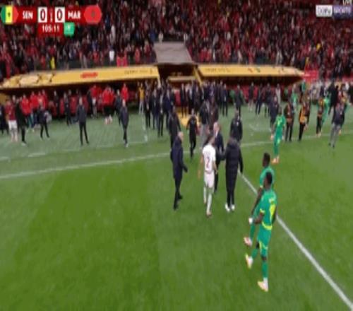 而比赛常规时间读秒阶段,摩洛哥曾一度获得绝杀点球。当时迪亚斯在塞内加尔禁区内被对方防守球员拉了肩膀后倒地,主裁观看VAR后判罚点球。